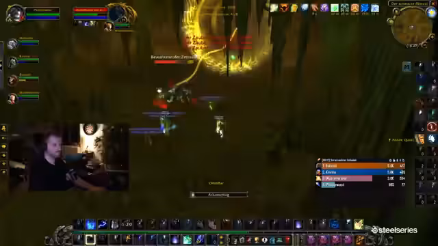 00:17:13Der Raid beginnt, nachdem die finale Gruppe zusammengefunden ist. Die ersten Mobs werden im Dungeon gezogen und eliminiert. Der erste Boss wird schnell getötet. Die Gruppe konzentriert sich nun auf den zweiten Boss, der als einer der nervigsten Bosse im gesamten Burning Crusade beschrieben wird. Er hat Mechaniken wie Mind Control und einen Charge, die die Gruppe vor Herausforderungen stellen. Während des Kampfes wird über die Aggro-Management gesprochen, da der Schattenpriester Juli die Aufmerksamkeit des Bosses auf sich zieht. Der Streamer spielt als Katze und sorgt für Schaden.