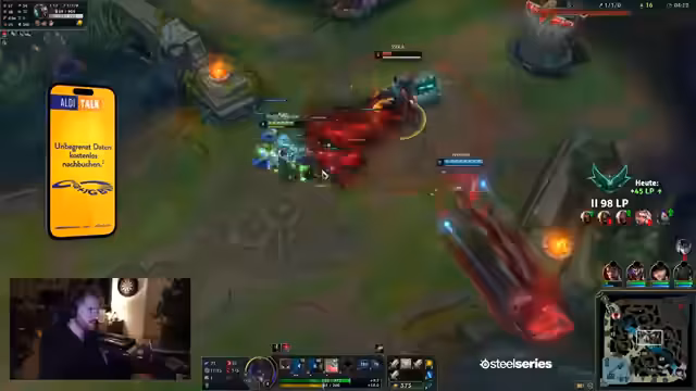 00:00:49Der Streamer startet mit einer Diskussion über seine Champion-Auswahl und aktuelle Spielstrategien. Er erwähnt eine neue Akali-Technik, die er von einem YouTube-Video übernommen hat, und zeigt sich zuversichtlich für den geplanten Diamond-Rank-Run. Während des frühen Gameplay-Segments kommentiert er Herausforderungen wie ein schwieriges Level 1 und die Performance seines Teams. Das erste Spiel endet knapp, wobei er die mangelnden Ressourcen und Jungler-Probleme analysiert. Trotzdem bleibt er optimistisch für die nächsten Runden und betont die Bedeutung von Abwechslung im Spielstil.