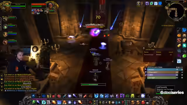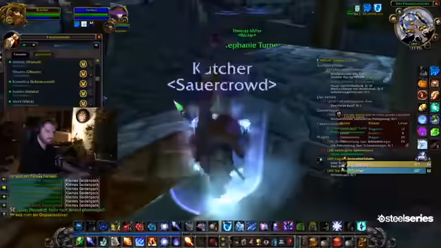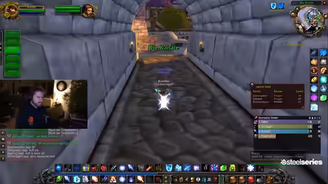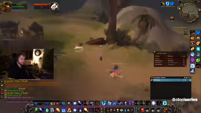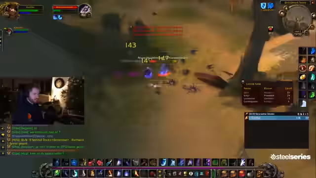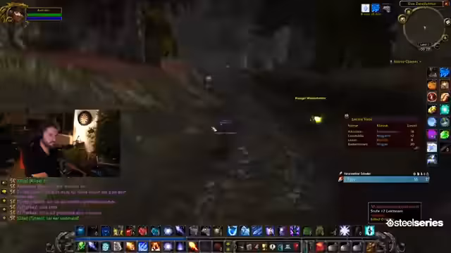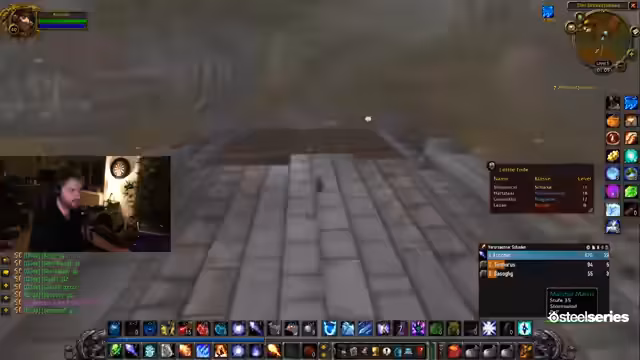 01:28:17Der Streamer beendet die Vorbereitungen und fliegt zum Treffpunkt nach Ironforge. Eine Person muss sich aufopfern und zu Fuß laufen, um die Gruppe zu ergänzen. Während des Runs findet eine rege Kommunikation statt, in der Rollen klar verteilt werden und der Streamer als Anführer die Calls gibt. Es werden Drops wie eine Hose mit starker Willenskraft für den Hexenmeister gefunden und im Bedarfsfall vergeben. Die Gruppe kämpft sich erfolgreich durch den Friedhof, wobei der Streamer den Chat bewusst unter dem Einfluss eines "geilen Drops" steuern lässt.