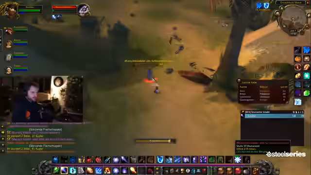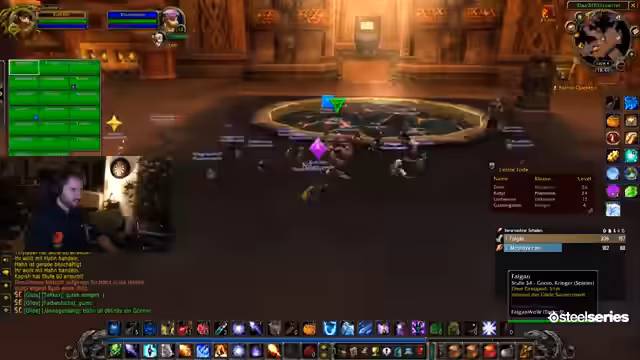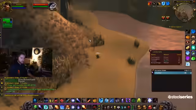 05:27:44Während die Gruppe auf ihren Dungeonstart wartet, kommt es zu erheblichen logistischen Problemen. Der geplante Buff in Booty Bay wird verpasst, da der Sprecher für die Organisation, Tristan, sich in anderen Aufgaben, wie dem Porten weiterer Spieler, verliert. Dies führt zu Frustration bei den auf den Buff wartenden Gildenmitgliedern. Gleichzeitig kämpft die Hügel-Gruppe mit dem Problem, dass das Gebiet von anderen Spielern, insbesondere Magiern, stark überfarmt wird, was die Effektivität der Gruppenfarmung mindert.