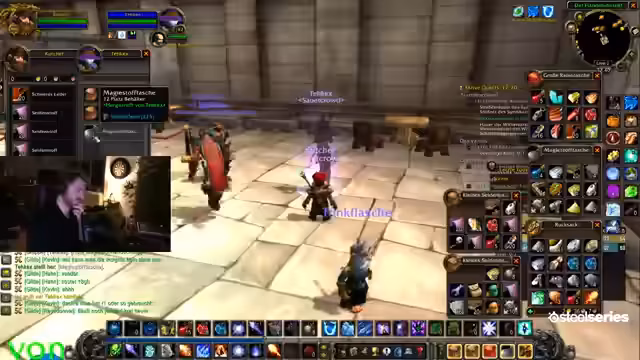 05:52:43Die Gruppe erkennt die Limitationen von Classic WoW, z. B. dass man im Dungeon nicht teleportieren kann. Ein geplanter Masterplan, der auf dieser Funktion basierte, scheitert. Kimo muss seine Rolle weiter anpassen, während die Gruppe die Herstellung von Tränken für Mana-Regeneration als zeitaufwendig und ineffizient empfindet.