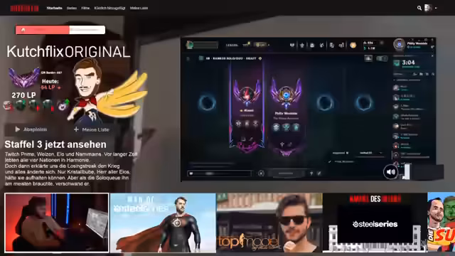 00:00:34Der Streamer begrüßt die Zuschauer und beginnt direkt mit Spielen auf der Solo-Queue. Er berichtet von einer früheren Crash-Performance und zeigt sich sehr motiviert für den anstehenden Abend, wobei er seine geilen Plays ankündigt. Es wird über den Spielstil gesprochen, der vom Tryhard-Modus zu einem entspannteren Zocken wechselt, und der Streamer äußert seine Frustration über die Chatnachrichten.