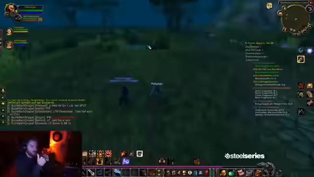 00:16:59Nachdem er seinen Ruhestein verschwendet hat, muss der Streamer den langen Weg zurücklaufen. Er beschreibt BFD als eine der schlechtesten Anfangs-Instanzen und kritisiert das Nachtelfen-Startgebiet. Er beginnt mit der Suche nach einer Gruppe für BFD und muss feststellen, dass es schwierig ist, einen Tank zu finden. Die Gruppe besteht aus Spielern verschiedener Nationalitäten, darunter ein Schwede, ein Tadschikistaner und ein Deutscher, was er als 'crazy' bezeichnet. Er reflektiert über seine Geografiekenntnisse und die Entstehung neuer Länder in Afrika. Während des Wartens auf den Heiler erledigt er einige Quests und bemerkt die entspannte Atmosphäre im Hardcore-Modus, wo niemand zum 'Go, go, go' drängt. Er freut sich über die gesammelten Erfahrungspunkte und grüne Drops.