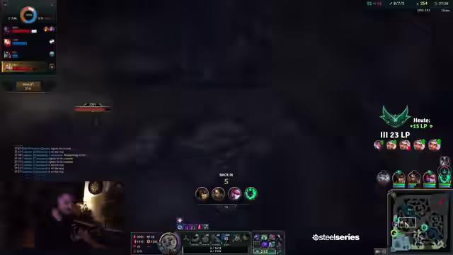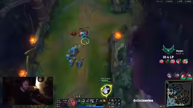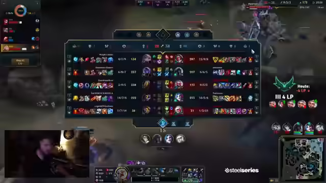 00:13:21Der Streamer hadert mit seinem eigenen Spielstil, insbesondere seiner Gier nach Kills, die zu unnötigen Toden führt. Er reflektiert über verlorene Vorteile und falsche Entscheidungen, wie das Helfen beim Drake. Trotzdem lobt er später im Spiel ein schönes Teamwork. Er äußert Frustration über häufige Ganks und sucht Rat bezüglich der Skillwahl für Support-Champions. Im weiteren Verlauf des Spiels wird er von gegnerischen Aktionen überrascht und fühlt sich überfordert, was zu negativen Kommentaren über den Spielverlauf führt. Er gesteht Fehler ein und äußert den Wunsch, sich zu verbessern. Er betont, dass er aus jeder Niederlage etwas lernt und freut sich über kleine Erfolge, auch wenn sie geringen Schaden verursachen.