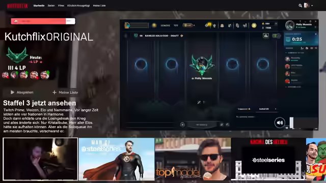 00:46:04Der Streamer bereitet sich auf ein Spiel gegen einen TF vor und erwartet Schwierigkeiten bis Level 3. Er erlebt frühe Rückschläge und äußert Frustration über wiederholte Ganks, die ihn ins Hintertreffen bringen. Er spricht über Internetprobleme und die damit verbundenen Kosten, wobei er seine Unzufriedenheit mit der aktuellen Situation äußert, insbesondere im Vergleich zu den Möglichkeiten, die Glasfaser bieten würde. Er diskutiert verschiedene Internetgeschwindigkeiten und deren Auswirkungen auf das Streamen und andere Aktivitäten im Haushalt. Er erklärt, dass er mit seiner aktuellen Internetstabilität zufrieden ist, aber es zu Problemen kommt, wenn andere im Haushalt gleichzeitig große Datenmengen herunterladen. Er gibt an, dass er momentan 52€ für sein Internet zahlt und dafür circa 60k reinbekommt.