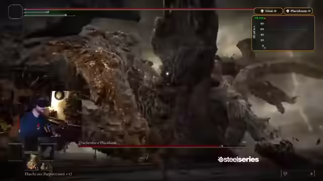 00:13:38Der erste Versuch, Placidusax mit Augenbinde zu besiegen, beginnt. Es werden Audioeinstellungen angepasst, um die Soundeffekte des Spiels besser wahrnehmen zu können. Schwierigkeiten bei der Orientierung und dem Erkennen der Attacken des Bosses werden deutlich. Es wird versucht, die Bewegungen und Angriffe des Bosses anhand der Geräusche zu deuten. Nach mehreren gescheiterten Versuchen wird der Streamer frustriert und analysiert das Replay, um die eigenen Fehler zu erkennen und die Strategie anzupassen. Dabei wird festgestellt, dass der Lock-On wichtig ist, um den Boss nicht aus dem Fokus zu verlieren. Es wird auch überlegt, ob der gewählte Boss der richtige für einen Blind Run ist, da viele Angriffe schwer vorherzusehen sind, wenn man nichts sieht.
