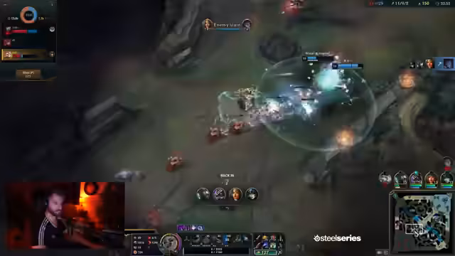 06:08:07Währenddessen wird auf die feindliche Strategie eingegangen, die sich gegenseitig unterstützt. Der eigene Support, die Nami, beginnt feindliche Wellen einzufrieren, was Teil der Spielstrategie ist. Es wird die Positionierung des gegnerischen Mordecai auf der Top-Lane beobachtet und die allgemeine Spielentwicklung als spannend beschrieben, trotz individueller Fehler.