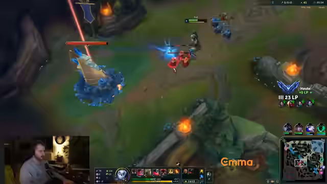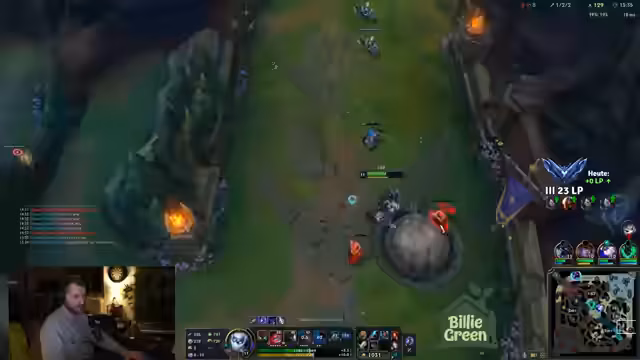 00:01:10Nach technischen Startschwierigkeiten mit einem Windows Update beginnt der Stream und der Streamer betritt das League of Legends-Game. Er beschreibt seine frühen Spielzüge als suboptimal und bezeichnet seinen Lane-Verlust auf der Top-Lane als 'geil'. Nach dem Enderweg, der ihm Gold verschafft hat, plant er, nun aggressiver zu agieren und Level 3 zu erreichen, um mit dem Jungler koordiniert Druck auf den Gegner auszuüben.