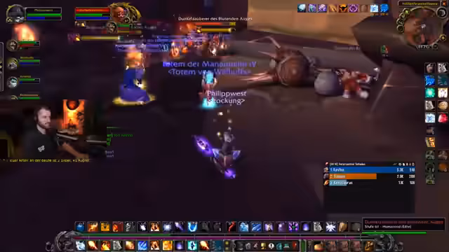 04:09:11Die Gruppe stößt auf einen weiteren Dungeon namens 'Blutkessel', den sie als anspruchsvoller und weniger 'smooth' als den vorherigen beschreiben. Es kommt zu strategischen Besprechungen über das Vorgehen, insbesondere im Umgang mit den Mobs. Besonders der Einsatz von Zaubern wie 'Nova' und 'Flammenstoß' wird diskutiert, um Mobs effektiv zu kontrollieren und Schaden anzurichten. Der Kampf gegen Bosse und die Bewältigung großer 'Pulls' (Gruppen von Gegnern) sind die beherrschenden Herausforderungen in diesem Abschnitt.