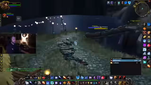 01:39:41Nachdem einige Teilnehmer endlich erfolgreich in die Instanz geladen sind, beginnt die eigentliche Gameplay-Phase. Die Gruppe, die sich nun formiert hat, erkundet den Dungeon und bekämpft die ersten Gegner. Es wird eine dynamische Kampfstrategie entwickelt, bei der ein Schamanen als Tank fungiert und ein Heiler die Gruppe unterstützt. Trotz anfänglicher Serverstabilität ist das Gameplay von Ungeduld und der Suche nach den ersten wertvollen Drops geprägt.