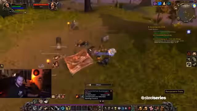 01:20:40Der Streamer gerät in einem Dungeon in Schwierigkeiten, als sein Pet Kevin stirbt und er von mehreren Mobs angegriffen wird. Er muss sich neu orientieren, Munition kaufen und sein Pet wiederbeleben. Währenddessen interagiert er mit einem aggressiven Spieler namens 'Inf, please', der ihn beleidigt und provoziert. Der Streamer bleibt gelassen und entscheidet sich, den Spieler zu melden. Später bildet er eine Gruppe mit einem Level 23 Paladin namens 'Trostpflaster', um die Quests effizienter zu erledigen, obwohl er die niedrige EP-Ausbeute kritisiert. Er reflektiert über die Altersstruktur der Classic-WoW-Community, die er auf über 35 Jahre schätzt, und amüsiert sich über die skurrilen Kommentare im Chat.