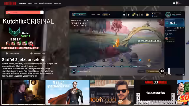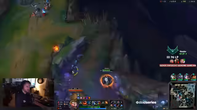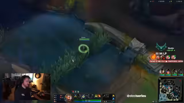 00:00:58Der Stream beginnt mit den ersten Runden als Qiyana in der Top-Lane gegen einen Master Yi. Der Streamer greift direkt einen Greedy-Build an und ist sich der ungewöhnlichen Teamkomposition ohne Teleport bewusst. Die Anfangsphase gestaltet sich zäh, es finden erste kleine Tausch-Handlungen statt. Dennoch werden bereits erste Kills für das Team geholt und die anfänglichen Goldunterschiede werden thematisiert, wobei die Lane bisher als ganz in Ordnung empfunden wird.
