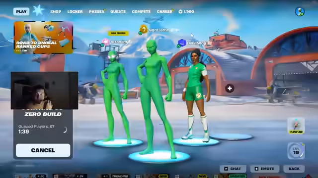 00:00:19Zu Beginn des Streams diskutieren die Spieler intensiv über die Auswahl des passenden Skins. Es wird nach einem grünen Skin gesucht, wobei verschiedene Vorschläge wie 'Junalwood Dancer' oder 'Black Knight' gemacht werden. Die Spieler sind sich uneinig und es herrscht Verwirrung über die Verfügbarkeit bestimmter Skins. Gleichzeitig wird die Landezone 'Dusty' als strategischer Punkt festgelegt, mit der Erwartung, dort nicht auf Gegner zu treffen. Es wird auch über die Nutzung von Geschenken als Verteidigungselemente gesprochen, wobei unklar ist, ob diese von allen Spielern verwendet werden dürfen. Die Regeln bezüglich 'Zero-Build' und 'Build'-Modus werden ebenfalls angesprochen, da hier unterschiedliche Informationen vorliegen. Das Hauptziel ist es, mindestens eine Runde und idealerweise das gesamte Turnier zu gewinnen, wobei ein Spieler betont, dass er sich auf das Team verlassen muss und sein 'Ego' zurückstellen sollte.