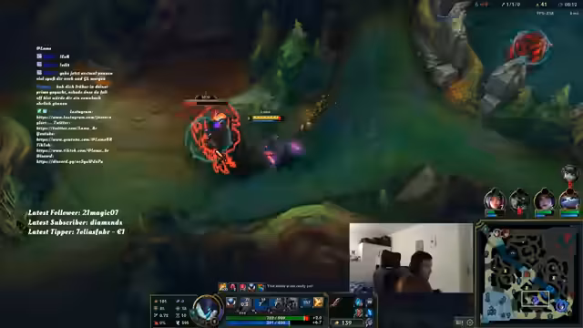 00:02:46Es beginnt eine Runde League of Legends mit Jinx als ADC. Der Streamer diskutiert Strategien für die Botlane und betont die Bedeutung der 'Zona Old'. Während des Spiels kommt es zu diversen Situationen, in denen der Streamer mit seinem Spiel unzufrieden ist, insbesondere mit der Leistung gegen Ari. Er hadert mit XP-Defiziten und wiederholten Toden. Es werden verschiedene Taktiken ausprobiert, darunter Kraschhaut und der Versuch, die Bufflane zu nutzen. Der Streamer äußert Frustration über die Teamdynamik und die Gegner, insbesondere über die gefeedete Leona und den Vi. Trotz anfänglicher Schwierigkeiten versucht der Streamer, durch Farmen und Teamarbeit wieder ins Spiel zu finden. Er experimentiert mit verschiedenen Item-Builds und versucht, das Spiel zu drehen. Die Spielsituation bleibt jedoch angespannt, und der Streamer äußert mehrfach seinen Unmut über den Spielverlauf und die Entscheidungen seiner Mitspieler.