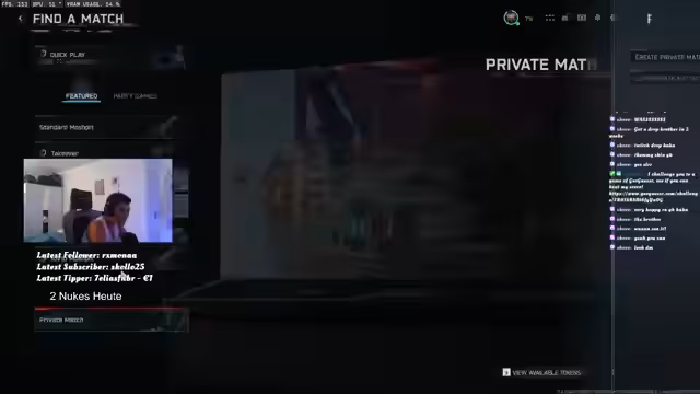 00:00:37Zu Beginn des Streams werden diverse technische und organisatorische Themen angesprochen. Der Streamer erwähnt, dass er seine Nuke-Aufnahmen schneiden und auf YouTube hochladen muss, da er nicht mehr Teil des Nukedier-Clans ist. Es folgen kurze, unverständliche Aussagen zu Mikrofonproblemen und der Aufforderung, Free Gifts einzulösen. Er kritisiert auch die aktuelle Konsolen-Lobby, wo er eine 2er-KD hält, und äußert sich zur E-Sports-Szene, wo er mit Maus gegen Controller antreten würde, was unfair sei.
