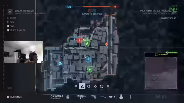 00:08:20Der Streamer äußert starkes Unbehagen über die Map-Größen und das Layout. Er findet die Maps viel zu klein, was zu sehr konfusen und chaotischen Gefechten führt, in denen man kaum Orientierung hat. Der genannte Spielmodus, Breakthrough, wird ihm zur Kenntnis genommen, aber er urteilt auch hier negativ. Er ist der Meinung, dass die Maps sehr scheiße und fatal sind und er nicht normal spielen kann, da er ständig umzingelt wird. Er fühlt sich wie ein Opfer, das sterben muss, sobald er spawnt.