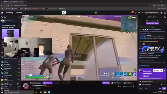 00:28:22Nach einem Kampf gibt es hitzige Diskussionen im Chat über die Verwendung von Items. Der Streamer ist verärgert über die Nutzung von Impuls-Grenaden durch einen Gegner, was er als Regelverstoß betrachtet, da diese laut Turnierregeln explizit verboten sind. Gleichzeitig muss das Team kurz unterbrechen, da ein Vorfall in der Nachbarschaft eine polizeiliche Ermittlung zur Folge hat, die den Stream kurz unterbricht.