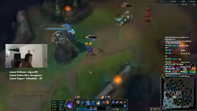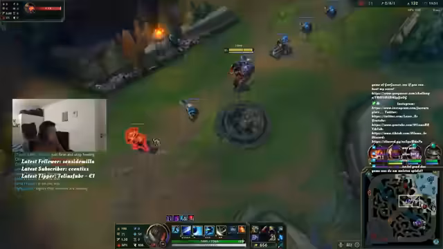 00:11:29Der Streamer widmet sich dem Spielen von League of Legends und beschreibt den stressigen Verlauf der Spiele. Er spricht über die Schwierigkeiten, die er im eigenen Lane gegen den Gegner hat, und kritisiert insbesondere den Nocturne, der permanent Lane-Push betreibt und ihn gankt. Er fühlt sich benachteiligt, da er nicht die Möglichkeiten hat, frei zu roamen, und frustriert über den mangelnden Support seines Teamkollegen. Der Verlust des Drakes wird als direktes Ergebnis der schlechten Entscheidungen des Teamkollegen gesehen.