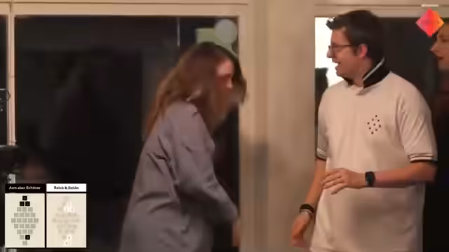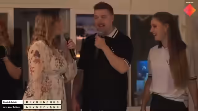 03:45:15Nachdem die erste Runde von Team Schwarz und die zweite Runde von Team "Arm aber schöner" gewonnen wurde, steht es 1:1. Im letzten, entscheidenden Duell benötigt "Team Reich und" nur eine Sieben oder höher zum Sieg. Während eines Wurfes des gegnerischen Spielers fällt eine Fünf, was die Siegbedingung für "Team Reich und" auf eine Sieben oder höher reduziert. In der finalen Wurfphase verfehlt der letzte Spieler von "Team Reich und" die gewünschte Sieben knapp, was den Sieg des Teams bedeutet.