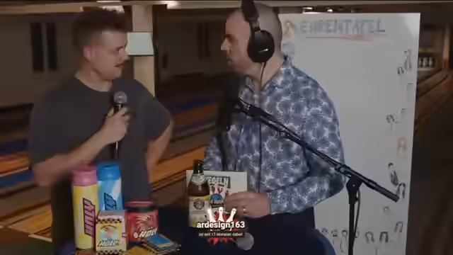 00:30:50Die Moderatoren führen ein Interviewraster durch das Teilnehmerfeld. Die Teilnehmerinnen und Teilnehmer werden vorgestellt, und ihre Erfahrungen, Ziele und Einstellungen zum Kegeln werden erfragt. Einige, wie Lara, haben bereits Erfahrung aus den Vorjahren, während andere, wie Malwanne, das Kegeln zum ersten Mal versuchen. Die Einstellungen variieren vom Spaß- bis zum Wettkampfgedanken; das Motto 'Hauptsache nicht letzter' wird mehrfach genannt. Ein besonderes Highlight ist der Wetteinsatz von Dirk, der eine CO2-Laserpistole mitbringt und damit jeden Spieler, der eine Neune wirft, mit einer eiskalten Dusche 'belohnt'.