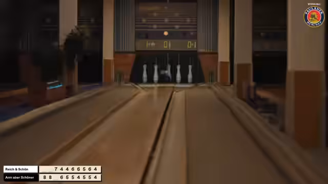 01:11:50Die ersten Spieler, Dirk und Olli, beginnen ihr Spiel auf der Bohlebahn. Dirk zeigt sich in Übung und wirft konstant Werte um die vier, während Olli Schwankungen aufweist. Franzi startet mit einer Hommage an Anne, die heute nicht anwesend ist, indem sie einen Pudel wirft. Ihre Leistung entwickelt sich zu einem Schnitt von sechs, was sie unter den Top-Spielern platziert. Die Wettkampfatmosphäre ist bereits spürbar, und die Kommentatoren geben laufend technische Tipps, wie z.B. die korrekte Schrittfolge und die Notwendigkeit, die Bahn auszuspielen.