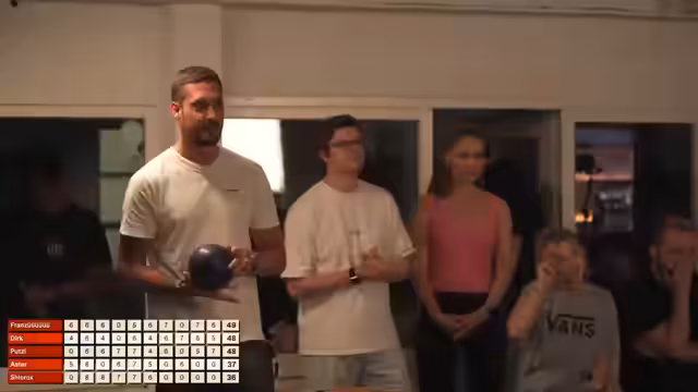 01:57:21Die letzten Teilnehmer wie Steven und Asta beenden ihre Runden. Steven kämpft sich mit stabilen, mittelmäßigen Würfen von unten nach oben, während Asta als kraftvoller Spieler auffällt, der jedoch seine Nerven unter Druck verliert. Asta erwähnt seinen Fanclub und betont, dass Kegeln Spaß mache, da es einfacher als Bowling sei. Die Atmosphäre bleibt trotz der sportlichen Konkurrenz locker und gesellig. Die Teilnehmer zeigen durchweg Engagement und Motivation, auch wenn ihre Ergebnisse variierten.