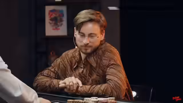 00:42:53In den ersten Runden baut Timmy Trinks einen beachtlichen Chipvorsprung auf, indem er mehrere Pots gewinnt, teilweise mit starken Händen wie Drillingen, aber auch durch aggressives Spiel. Andere Spieler wie Carolin von der Gröben scheiden nach einer typischen Anfängerfehler-Falle früh aus. Regelmäßig erklären die Moderatoren, wie Blinds, Stages und Handwertigkeiten funktionieren, und kommentieren das Spielgeschehen aus der Zuschauerperspektive.