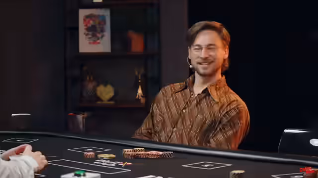 00:32:42Nach der vollständigen Ankunft aller Spieler beginnt das Turnier. Der professionelle Dealer, Marianne, übernimmt das Verteilen der Karten und die Leitung des Spiels. Für Anfänger wurden die Regeln vereinfacht, indem die 'Ante'-Runde gestrichen wurde, um das Spiel zu beschleunigen und den Einstieg zu erleichtern. Der Streamer gibt bekannt, dass ein gemeinsamer Chat mit anderen Kanälen läuft und bittet um Feedback. Die erste Hand startet bereits mit hohem Einsatz und zeigt früh eine starke Hand eines Teilnehmers.