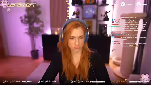 00:09:37Im Stream werden verschiedene Themes behandelt. Lara startet eine Umfrage im Instagram-Chat, um die Community nach neuen Spielideen zu fragen. Es wird über League of Legends gesprochen, wobei die hohe Einstiegshürde für Frustrierte angesprochen wird. Heroes of the Storm als persönlicher Favorit wird erwähnt. Anschließend folgt ein ausführlicher Hardware-Talk, in dem ihre Logitech-Pro-Headset-, Maus- und Tastatur-Geräte vorgestellt und mit Razer-Alternativen verglichen werden. Für MMOs wie World of Warcraft bevorzugt sie die Logitech G604 aufgrund ihrer Daumentasten.