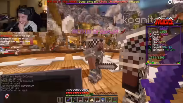 05:23:12Ein besonderes Highlight des Streams ist der unerwartete Besuch des bekannten US-Streamers Dr. Donut auf dem HugoSMP-Server. Trotz sprachlicher Barrieren und technischer Probleme wie dem nicht funktionierenden Voice-Chat sorgt seine Anwesenheit für große Begeisterung und wird als 'Bild für die Götter' bezeichnet. Er begutachtet die Mechaniken des Servers, wie das Auktionshaus und die Kisten-Systeme, während die Moderatoren versuchen, ihm den Aufenthalt so angenehm wie möglich zu gestalten. Dieser Austausch unterstreicht die Reichweite des Projekts und führt zu einem Vergleich der verschiedenen Server-Konzepte zwischen Deutschland und den USA.