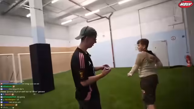 00:11:42Es wird festgestellt, dass das Setup des Streamers immer noch nicht funktioniert, worum sich gekümmert werden soll. Der Streamer interagiert mit anderen Personen vor Ort, darunter RTL-Mitarbeiter, die Vlogs erstellen. Es wird überlegt, zu den Zuschauern zu gehen und Backstage-Bereiche zu erkunden, wobei die Kings League Regeln und Zugangsbeschränkungen eine Rolle spielen. Der Streamer äußert den Wunsch, die Spieler des eigenen Teams zu treffen und benötigt einen Ball. Es wird über die Spieldauer von 40 Minuten (2x20) gesprochen. Der Streamer möchte die Spieler des eigenen Teams treffen und benötigt dafür einen Ball. Es wird überlegt, auf die Tribüne zu gehen und Zuschauer zu interviewen, was jedoch durch fehlende Bändchen erschwert wird. Es wird ein Bändchen organisiert, um Zugang zu erhalten.