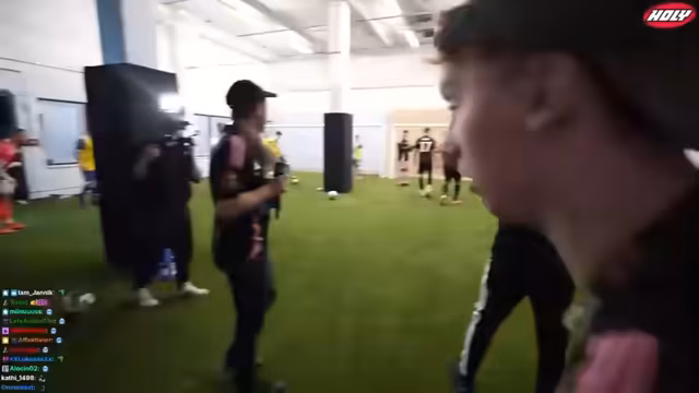 01:26:55Der Streamer ist von der Energie und dem Niveau der Spiele begeistert und äußert den Wunsch, selbst mitzuspielen. Er besucht die Spieler im Trainingscamp, um sie vor dem Anpfiff zu beobachten und zu interviewen. Dabei lobt er die Fähigkeiten von Danny Bloom, als den talentiertesten Spieler, und geht auf das Thema Teamstimmung ein, die er jedoch als nicht ganz familienähnlich beschreibt. Die Vorbereitung auf das eigene Spiel steht im Fokus, wobei die Organisation des Essens für das Kamerateam ebenfalls eine Rolle spielt.