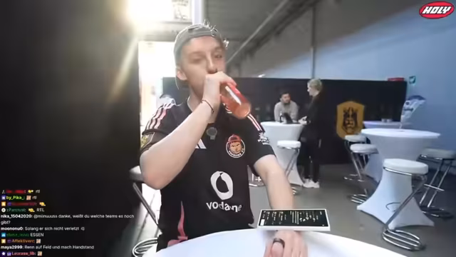 03:33:53Nach dem Spiel geht der Streamer mit einem 13-jährigen Fan namens Nick ins Gespräch. Eine kleine Wette über 5 Euro, die Nick im Spiel verloren hat, wird besprochen. Der Streamer verspricht, das Geld via PayPal zu überweisen. Während des Gesprächs gibt es technische Schwierigkeiten mit der Kamera und dem Headset. Der Streamer fragt den Jungen nach dessen Hobbys und lobt dessen Fußballleidenschaft.