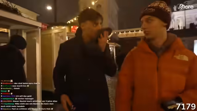 02:50:34Die Gruppe sucht weiterhin nach einem passenden Geschäft für Handschuhe und überlegt, H&M oder Intersport zu besuchen. Währenddessen treten kurzzeitig Bedenken bezüglich der Internetverbindung auf, die jedoch schnell wieder zerstreut werden. Die Suche nach einem USB-C-Kabel und einer Powerbank wird ebenfalls thematisiert, da technische Ausrüstung für den Stream unerlässlich ist. Es kommt zu einer weiteren unerwarteten Begegnung mit einem Fan, der die Streamer erkennt und sich als sehr freundlich und hilfsbereit erweist. Diese Interaktion unterstreicht die positive Resonanz, die die Streamer in der Öffentlichkeit erfahren, und zeigt, wie spontane Begegnungen den Verlauf des Tages beeinflussen können. Die Hilfsbereitschaft des Fans, der sogar ein Kabel findet, ist ein Highlight der Shopping-Tour.