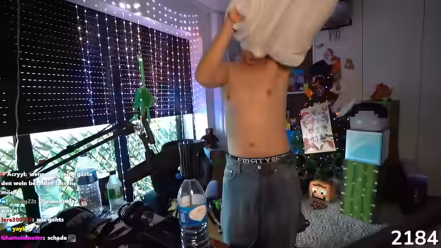 02:17:08Ein Großteil der ausgepackten Kleidungsstücke erntet bei der Bewertung durch den Streamer wenig Begeisterung. Er gibt Mickey-Mouse-Badeshorts, T-Shirts und Socken nur mittelmäßige Bewertungen von 2 bis 3 von 5 Punkten. Der Fokus liegt auf Baggy-Jeans, die er mehrmals an- und auszieht, um verschiedene Styles zu testen, wobei er sich unwohl fühlt und seinen eigenen Stil infrage stellt. Statt die Dinge wegzuwerfen, denkt er an eine Verlosung für seine Zuschauer, um sie loszuwerden.