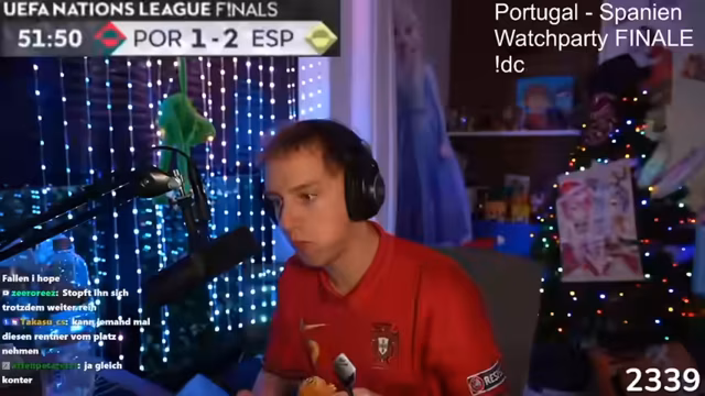 04:39:06Die Stimmung schlägt in Richtung des bevorstehenden Hauptereignisses des Abends, dem Finale der UEFA Nations League zwischen Portugal und Spanien. Der Streamer diskutiert die technischen Anforderungen, um alle Zuschauer mit einzubeziehen. Er erklärt, dass es den meisten Zuschauern an einem RTL Plus-Account fehlt und sucht nach jemanden, der den Stream auf Discord für die restliche Community restreamen kann. Es wird eine热烈 Diskussion über verschiedene Streaming-Optionen, VPNs und Verzögerungen geführt, bis schließlich eine Lösung gefunden wird und das Spiel live geschaut werden kann.