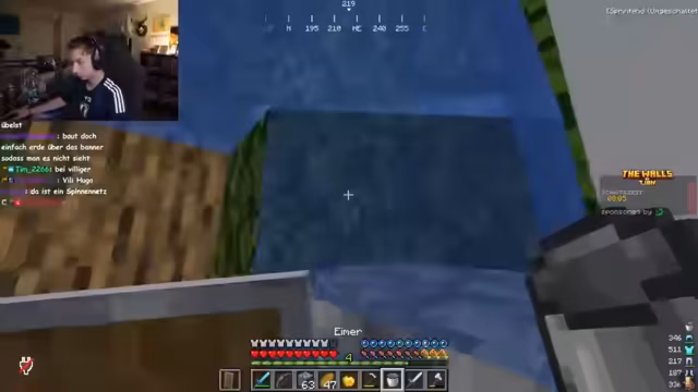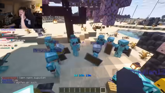 03:47:53Nach dem verlorenen Minispiel herrscht große Frustration. Die Spieler beklagen sich über das unfair gestaltete Spiel und den Verlust ihrer Items. Ein Spieler sucht verzweifelt nach einem Wassereimer, um von einer hohen Position herunterzukommen, während andere über die Sinnhaftigkeit des Spiels und die Belohnung von 100 Obis diskutieren. Die Suche nach einem Amboss (Anvil) wird dringend, um die gesammelten Level für Verzauberungen nutzen zu können. Es stellt sich jedoch heraus, dass der Amboss nur durch Minispiele erhältlich ist, was die Spieler weiter frustriert. Trotzdem versuchen sie, ihre Ausrüstung zu verbessern, indem sie Eisenschwerter mit Schärfe-Verzauberungen herstellen. Die Spieler diskutieren auch über die Effizienz des Farmens und die ungleiche Verteilung der gefundenen Diamanten und Eisen.