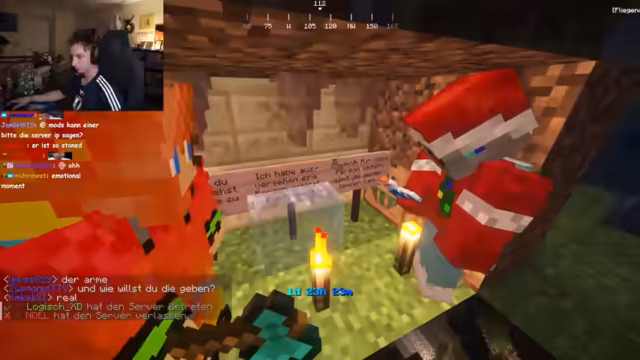 02:58:13Ein Spieler namens 'Spielverderber' opfert sich, um den Namen seiner Familie reinzuwaschen, was zu Verwirrung und Trauer führt. Die anderen Spieler versuchen, den Sinn hinter diesem Tod zu verstehen und wie es die Gruppe beeinflusst. Kurz darauf beginnt das lang erwartete 2000€ Minecraft Turnier. Der Streamer erklärt die Regeln: Vier Teams mit jeweils 16 Spielern haben zwei Stunden Farmzeit auf einer großen Map. Es gibt versteckte Kisten und alle halbe Stunde ein Minispiel, um Vorteile zu erspielen. Jedes Team hat ein Banner, dessen Zerstörung das Respawn verhindert. Nach der Farmzeit fällt eine Wand, und der Kampf beginnt, wobei das letzte überlebende Team gewinnt und 500 Euro Preisgeld erhält. Die Spieler diskutieren die Strategien und die Dynamik ihrer Teams.