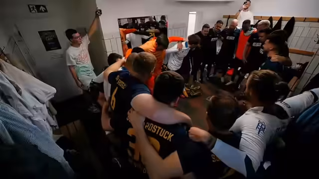 01:25:52Die erste Halbzeit endet mit dem Stand von 1:2 für Glashütte. Die Tabelle wird jedoch gezeigt und verkündet, dass die Mannschaft bereits vor diesem Spiel Meister ist. Der Vorsprung ist uneinholbar. Trotz des Rückstandes wird die Meisterschaft gefeiert. Während der Halbzeitpause gibt es Diskussionen über die Defensive und das Spiel, das schnellere Konter begünstigt. Die Stimmung in der Kabine ist trotz des Rückstandes gut.