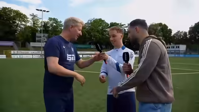 01:05:27Neben dem sportlichen Geschehen werden die Sponsoren vorgestellt. Der Kanal präsentiert eine neue Partnerschaft mit 'Knabe Malz' als Sponsor des SSV Harztag. Die Teilnehmer probieren das Malzbier und beschreiben den Geschmack. Außerdem wird ein inoffizieller Titel im Team diskutiert: 'bester Influencer'. Mo gilt momentan als Nummer 1, was zu einem Scherzduell über seine spielerischen Fähigkeiten führt.