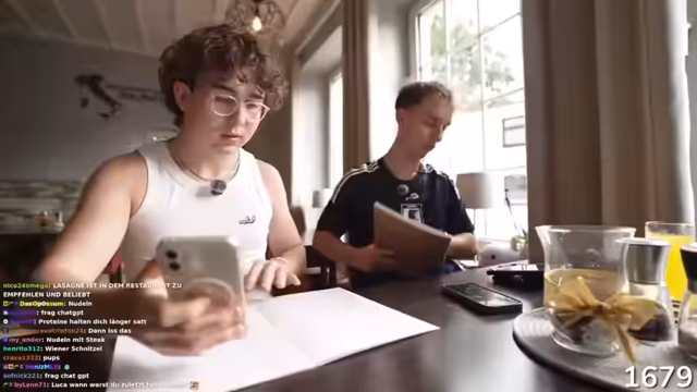 03:13:35An einem italienischen Restaurant angekommen, entscheidet sich der Streamer für ein Hähnchenfilet mit Gemüse für 18,50 Euro. Er gibt an, von einem Freund ein Budget von 18,50 Euro für das Essen zugewiesen bekommen zu haben, was er als ungerecht empfindet. Es kommt zu einem humorvollen Disput über die Bezahlung und den, wie es im Stream genannt wird, 'VIP-Status' von Leo Mgames.