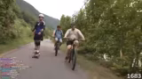 02:49:26Um die Monotonie zu brechen, wechseln sich die Streamer bei der Fahrt ab. Ein spektakulärer Moment entsteht, als einer von ihnen springt, um über ein Fahrrad zu gelangen, und der Streamer dies filmt. Die Gruppe hat Spaß an dieser Aktion und fährt weiter. Ein weiterer Zuschauer, der gerade vorbeikommt, wird kurz angesprochen und beteiligt sich ebenfalls an der Fahrt.