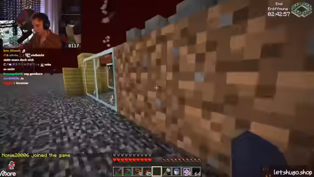 00:20:17Der Streamer stellt fest, dass sein Schiff in Minecraft verschwunden ist, was auf einen früheren 'Crash-Out' zurückzuführen ist. Er fragt sich, wie er mit der Zerstörung umgehen soll – ob er alles neu bauen oder reparieren soll. Die Kanone scheint jedoch weitgehend intakt geblieben zu sein. Die Diskussion wechselt zu einem geplanten Prank, bei dem acht Leute den gesamten Server beim End pranken werden. Ein Hinweis wird gegeben, der auf die leere Bienenfarm des Streamers anspielt, obwohl er bestreitet, etwas gestohlen zu haben. Er bittet darum, seine Bienen nicht zu klauen, da er sie benötigt. Die Enttäuschung über das heutige Stream Awards Voting, das mit der Enderöffnung kollidiert, wird geäußert. Ein Zuschauer erzählt, dass er den Streamer im Fitnessstudio schaut, bis er über den 'Crash' sprach und dann weggeschaltet hat.