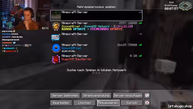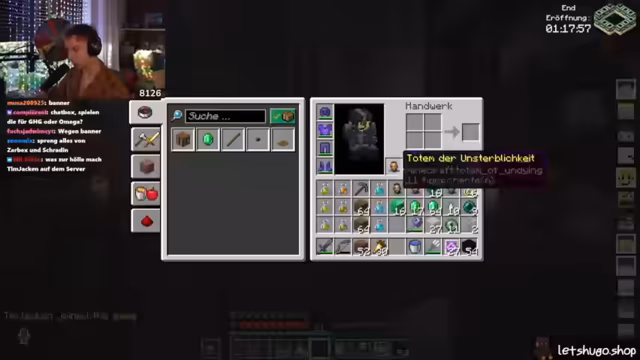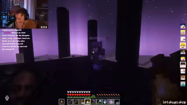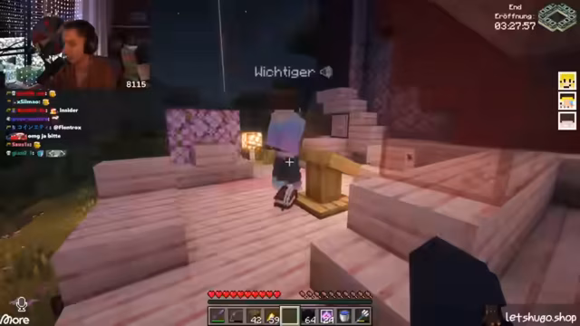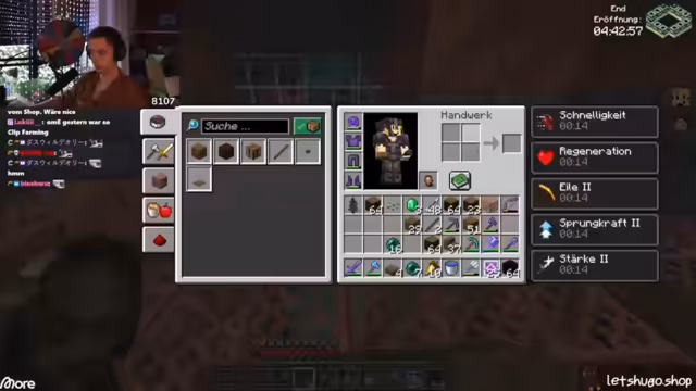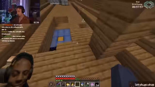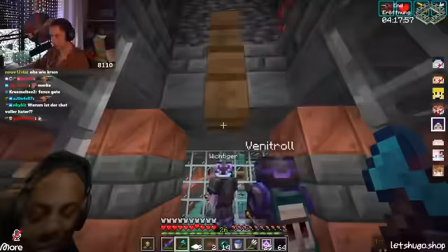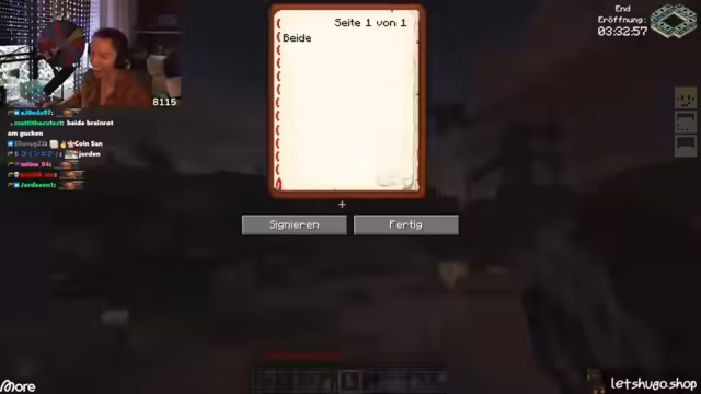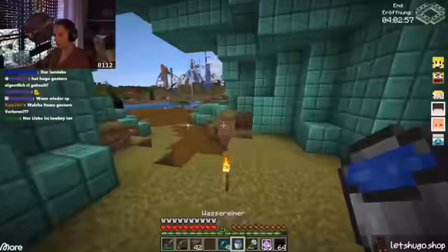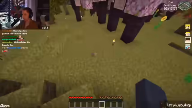 05:43:03Nach einer kurzen Diskussion über den Zustand des Servers und die Notwendigkeit eines Neustarts, der erfolgen soll, sobald alle Spieler sicher positioniert sind, um Abstürze zu vermeiden, richtet sich die Aufmerksamkeit auf das bevorstehende End-Event. Es gibt Unsicherheiten bezüglich der Verfügbarkeit anderer Server nach dem Neustart und Fragen zur neuesten Version von Kupfer-Golems, die jedoch unbeantwortet bleiben. Die Spieler bereiten sich darauf vor, sich zum End-Portal zu begeben, wobei der Plan ist, auf dem Weg dorthin noch etwas "Aura-Farmen" zu betreiben. Es wird betont, wie wichtig es ist, schnell wieder dem Server beizutreten, sobald dieser neu gestartet wurde, um keine Vorteile zu verlieren. Die Stimmung ist angespannt und die Spieler sind bereit für die bevorstehenden Herausforderungen im End, insbesondere im PvP-Kampf.