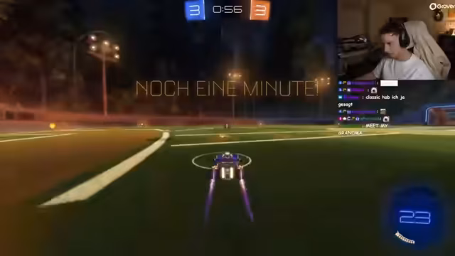 00:41:53Während des Streams kommt es zu einem spontanen Rocket-League-Duell gegen einen Zuschauer namens Luca. Ein unsauberes Tor führt zu einem hitzigen Disput über die Gültigkeit des Spiels und eine mögliche Wette über 50 Euro. Nach einem Nacktexperiment und Diskussionen über Körperzufriedenheit und Fitness, findet der Streamer einen Kaninchen-Schatten an der Wand. Eine gesundheitliche Sorge, ein pulsierender Bereich am Bauch, löst eine hypochondrische Panikreaktion aus, die zu einer vermeintlichen Untersuchung führt.