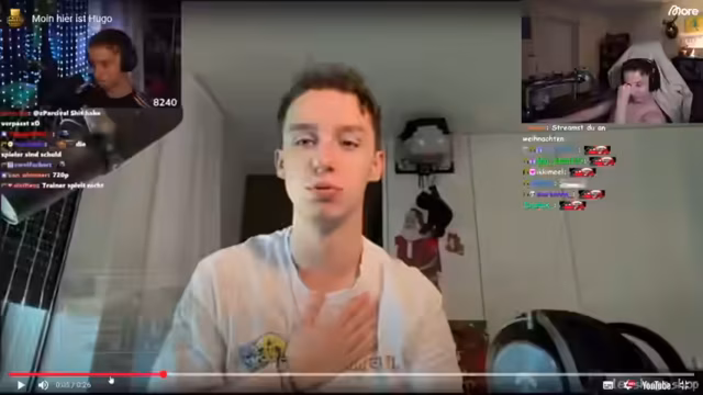 00:07:25Der Stream beginnt mit einer lockeren Begrüßung und der Ankündigung eines „Schatzes“, der gefunden werden soll. Es folgt eine Reihe von persönlichen Anekdoten, darunter eine Impfung in der Schule, bei der unsicher ist, wofür sie genau war, und die Erwähnung von HPV und Corona-Impfungen. Der Streamer beschreibt auch seine Friseurprobleme, die durch einen Stau verursacht wurden, und teilt eine skurrile Begegnung mit einer alten Dame, die ihm erzählte, sie habe ein Haus gekauft. Er thematisiert zudem seine Schwierigkeiten beim Einschlafen aufgrund von zu vielen Gedanken und schlägt Podcasts als Lösung vor, um den Geist abzulenken. Die sprachliche Verwirrung durch das Vermischen mehrerer Sprachen wie Luxemburgisch, Deutsch, Englisch und Französisch wird ebenfalls angesprochen, was zu humorvollen Momenten führt.