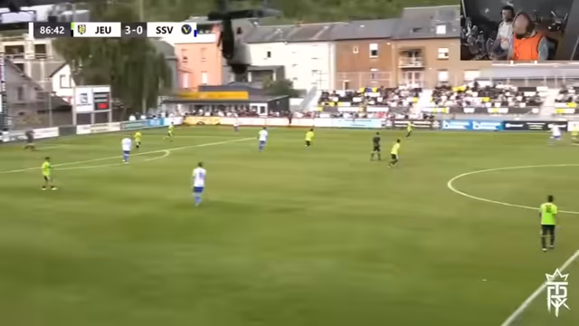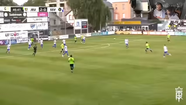 00:36:05Das Spiel beginnt und die enorme Überlegenheit des Gegners wird sofort sichtbar. Jeunesse Esch dominiert den Ballbesitz mit ca. 90% und kontrolliert das Spielgeschehen völlig. Der SSV Harztag verteidigt tief und als Fünferkette, was dem Gegner wenige klare Chancen lässt, aber auch kaum eigene Angriffe ermöglicht. Die Freude der Streamer über die geschaffene Defensive und die positive Stimmung im Stadion, das sich füllt, steht im Vordergrund.