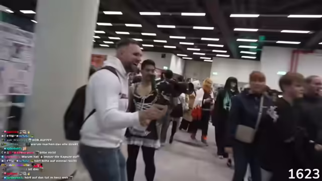 01:16:27Es wird kurz überlegt, ob eine bestimmte Person anwesend ist, aber es wird verneint. Es wird über einen Kater gesprochen und darüber, dass jemand in Fortnite verloren hat. Es wird festgestellt, dass jemand ein bestimmtes Jersey trägt, das zuvor in Betracht gezogen wurde. Die Gruppe plant, essen zu gehen und erwähnt, dass jemand eine Powerbank benötigt. Es wird kurz überlegt, ein Poster zu entfernen, aber verworfen. Es wird überlegt, ob Lokochicken überbewertet ist. Es wird nach Cosplayern gesucht, insbesondere nach solchen, die Halo darstellen. Es wird festgestellt, dass die Messe voller ist als erwartet und dass es viele Villager gibt. Es wird der Wunsch geäußert, Ando zu finden und die Traurigkeit darüber ausgedrückt, dass dies nicht der Fall ist.