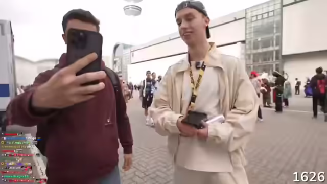 00:36:34Die Suche nach der VIP-Lounge geht weiter, und es wird überlegt, wo sie sich befinden könnte. Es wird der Wunsch geäußert, alle drei K-Pop-Gruppen für ein Bild zu finden. Es werden Fotos mit Fans gemacht, und es wird über die Teilnahme an der Spirit Party gesprochen. Es wird überlegt, ob man zum Gunnergy-Stand gehen und mit Red Bull kopfüber kippen soll, wobei eine Wette von 10 Euro im Raum steht. Es wird der Wunsch nach einem Ado-Cosplay geäußert, und es wird überlegt, wie man einen Schatten cosplayen könnte. Es wird ein limitertes Bild gemacht. Es wird überlegt, ob man im Gehen weiter Fotos machen soll. Es wird überlegt, ob man es heute noch in die VIP schafft.