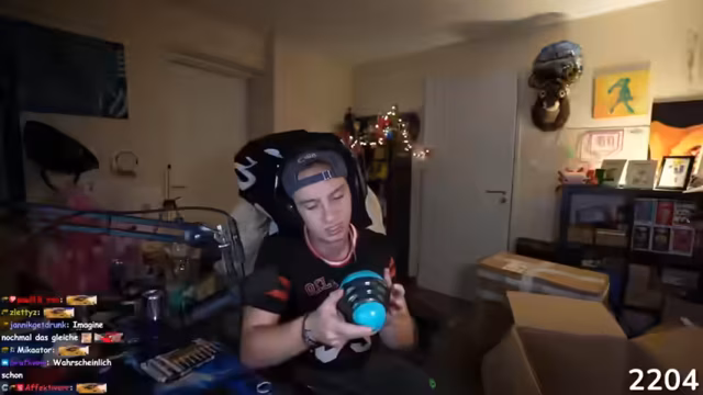 04:10:15Es folgt eine Karaoke-Soundbar mit zwei Mikros, die jedoch ohne Musik ausprobiert wird. Der Streamer versucht, verschiedene Lieder zu singen, scheitert jedoch am Text. Ein Mini-Kühlschrank wird als besonders cooles Fundstück gefeiert, in dem man Obst, Schminke und Alkohol aufbewahren kann. Ein Mikrofaser-Sporttuch wird als bereits vorhanden erkannt. Eine German Tech Subbox Mini Starter Kit entpuppt sich als defekt und wird als Vape identifiziert. Der Streamer ruft einen Freund an, um sich bei der Identifizierung des Geräts helfen zu lassen. Ein Parfüm wird als Duft von Revi erkannt. Ein automatischer Tierfeeder wird als unnötig erachtet. Ein Bodyspray wird als unangenehm riechend beschrieben. Darwin Leggings werden gefunden und anprobiert, wobei der Streamer seinen eigenen Arsch lobt. Ein Müllbeutel wird als Zweirad-Wetterschutz umgebrandet. Ein Hundemantel ist zu groß für den eigenen Hund. Abschließend wird festgestellt, dass die Mystery Boxen insgesamt enttäuschend waren, obwohl einige goldene Momente dabei waren.